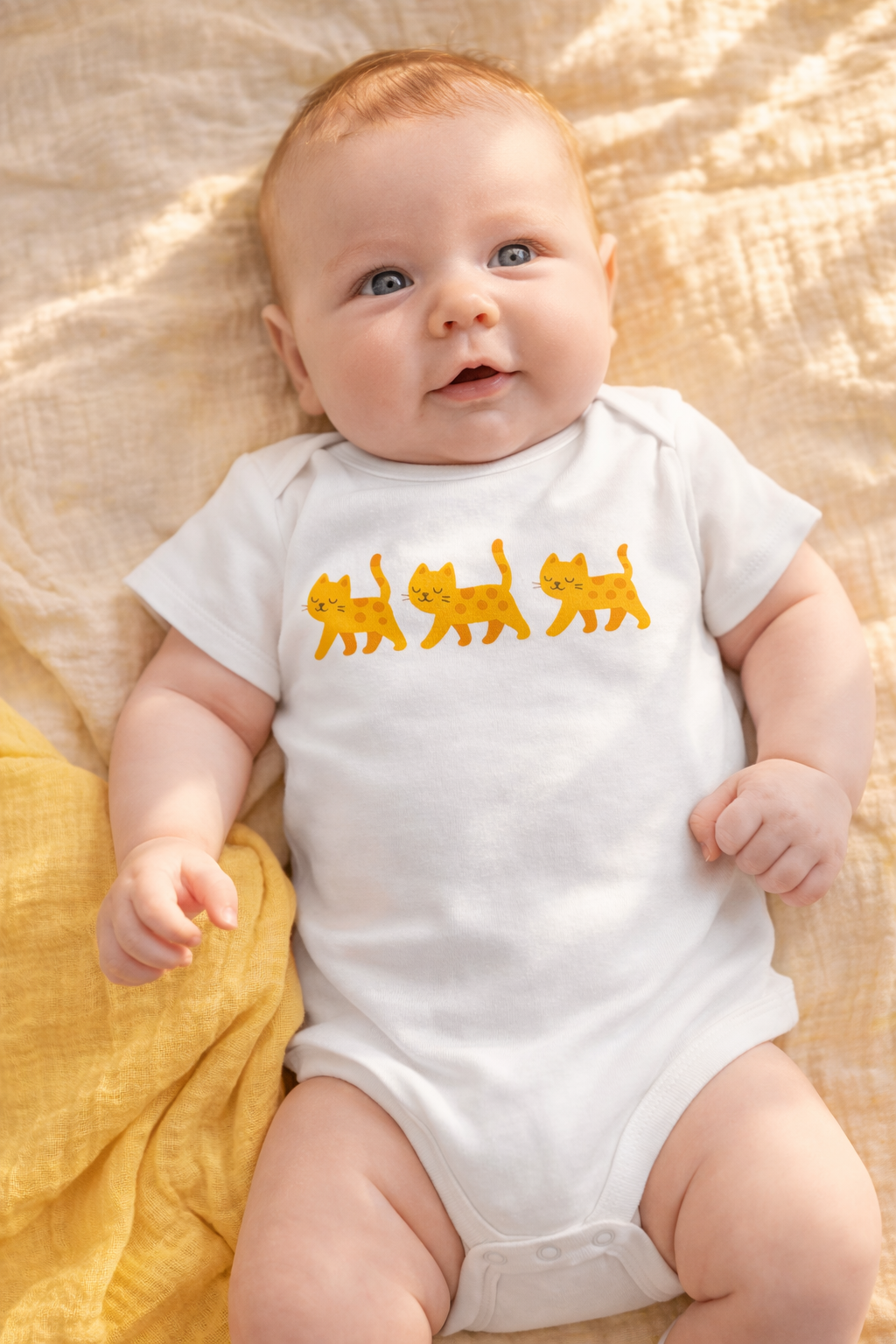 Ce body à manches courtes en coton organique est certifié OEKO-TEX® et EU Ecolabel. Il respecte la peau des bébés tout en s’inscrivant dans une démarche durable. Son design mixte et son motif de petits chats en font une pièce aussi mignonne que responsable.